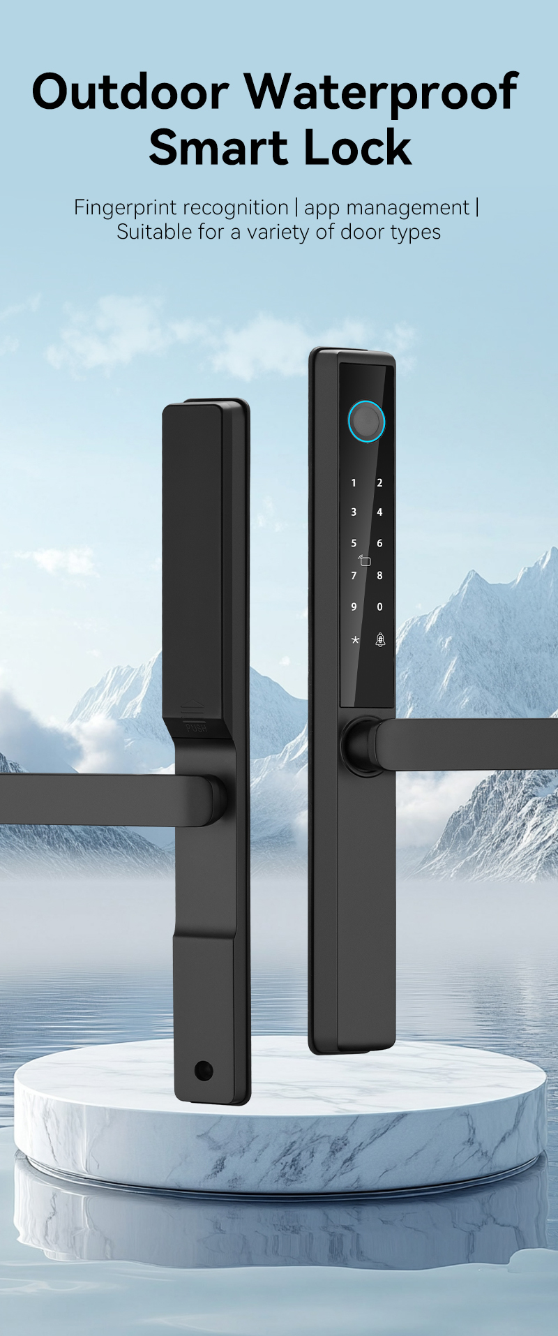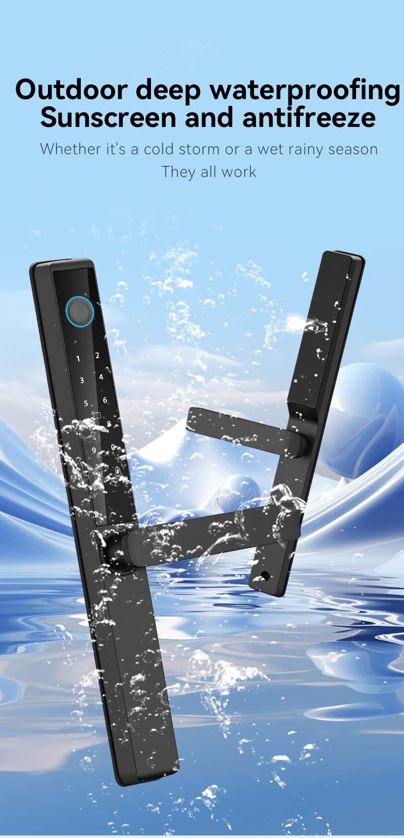 La serratura digitale Qleung S960 offre diverse opzioni di accesso. Sblocca tramite impronta digitale, password, chiave a scheda, APP per telefono o chiave tradizionale. Si adatta a porte scorrevoli, in vetro, con telaio, in alluminio a ponte rotto e cancelli KFC, rendendola perfetta per case e aziende. Sicura, comoda e versatile.