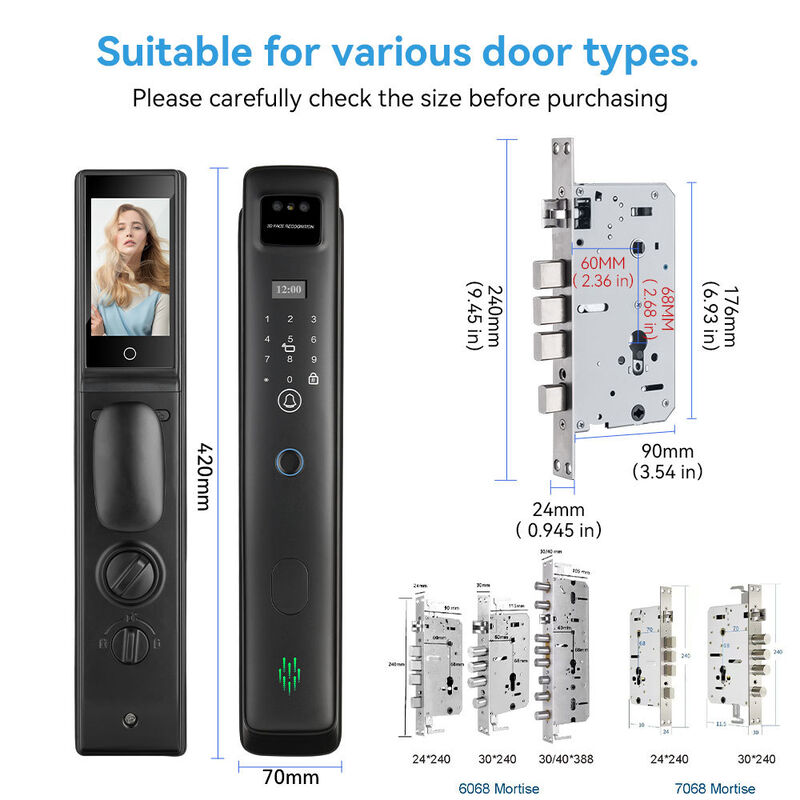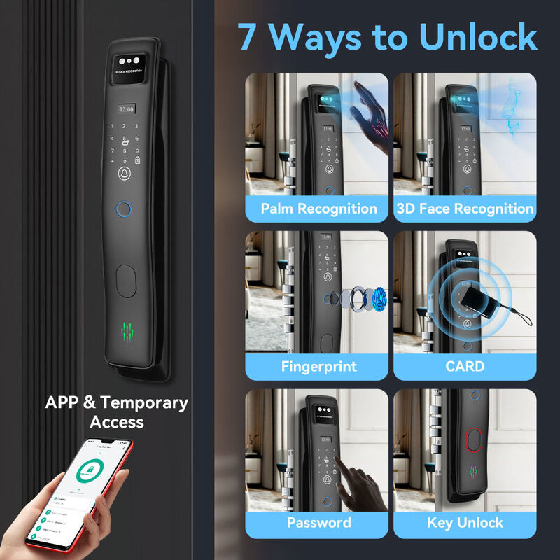 | Livello del cilindro di blocco: | cilindro di chiusura di sicurezza di classe C | Via aperta.: | VISO 3D+VENA DEL PALMO+Tuya Videochiamate attive+Password+Card+Chiave+App Tuya |